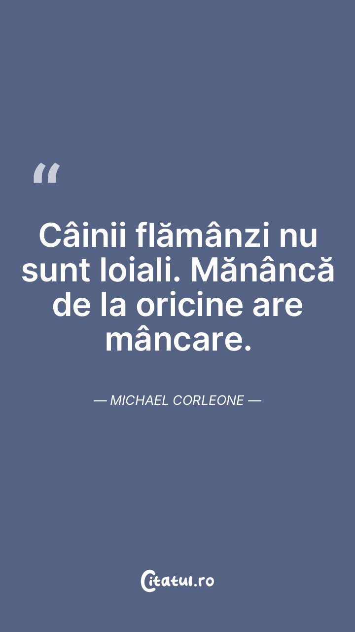 Câinii flămânzi nu sunt loiali. Mănâncă de la oricine are mâncare. Michael Corleone