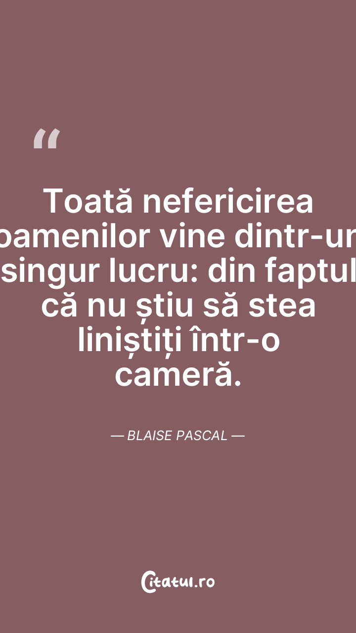 Toată nefericirea oamenilor vine dintr-un singur lucru: din faptul că nu știu să stea liniștiți într-o cameră. Blaise Pascal