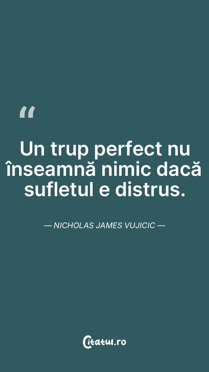 Un trup perfect nu înseamnă nimic dacă sufletul e distrus. Nicholas James Vujicic
