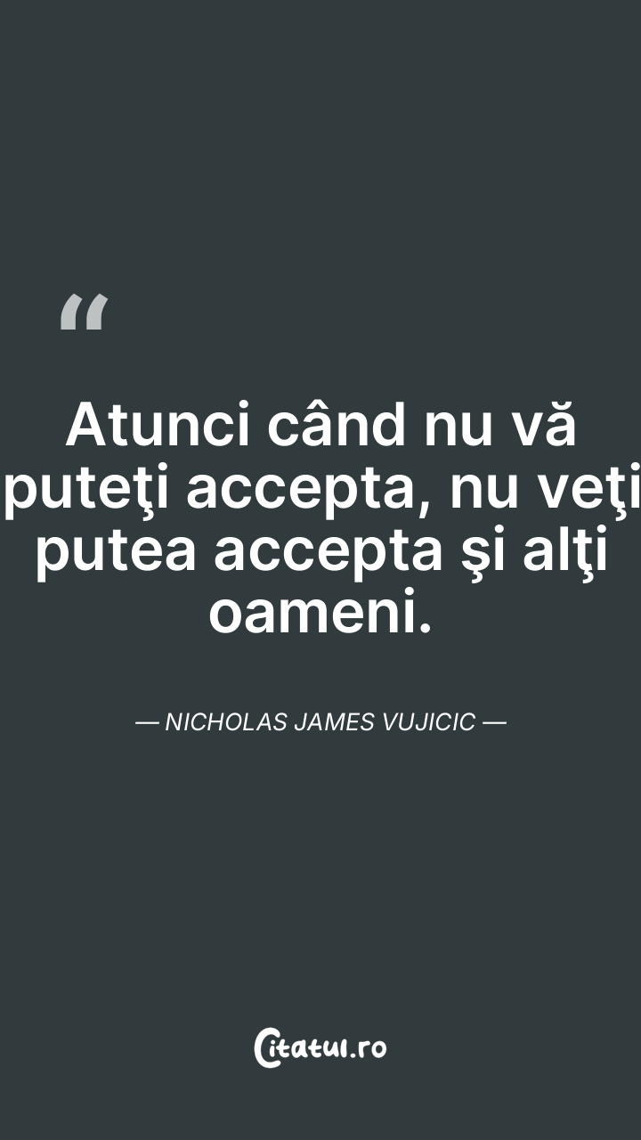 Atunci când nu vă puteţi accepta, nu veţi putea accepta şi alţi oameni. Nicholas James Vujicic