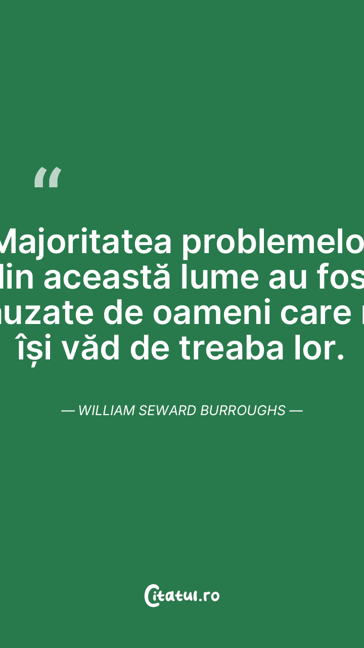 Majoritatea problemelor din această lume au fost cauzate de oameni care nu își văd de treaba lor. William Seward Burroughs