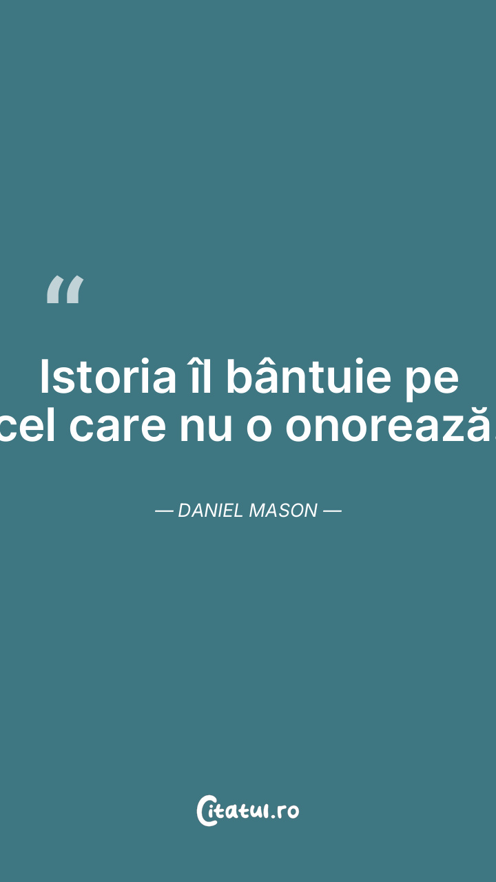 Istoria îl bântuie pe cel care nu o onorează. Daniel Mason