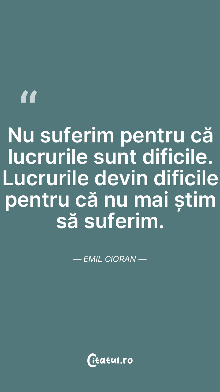 Nu suferim pentru că lucrurile sunt dificile. Lucrurile devin dificile pentru că nu mai știm să suferim. Emil Cioran