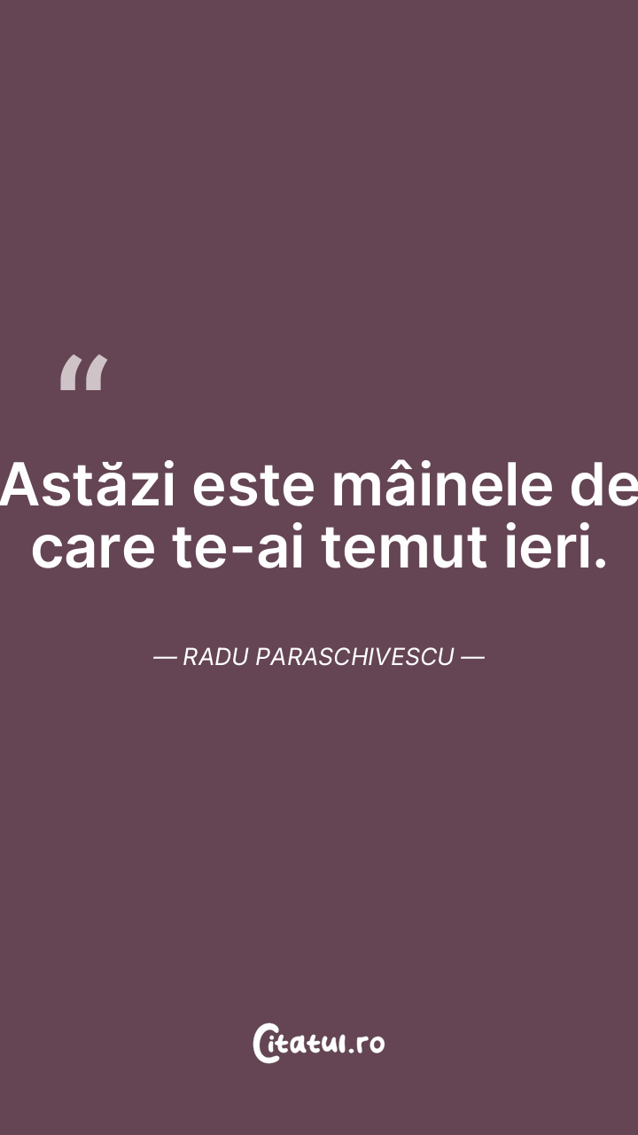 Astăzi este mâinele de care te-ai temut ieri. Radu Paraschivescu