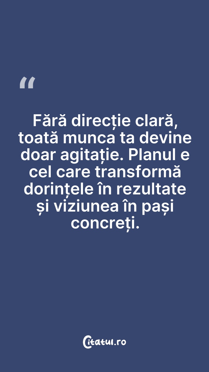 Fără direcție clară, toată munca ta devine doar agitație. Planul e cel care transformă dorințele în rezultate și viziunea în pași concreți.