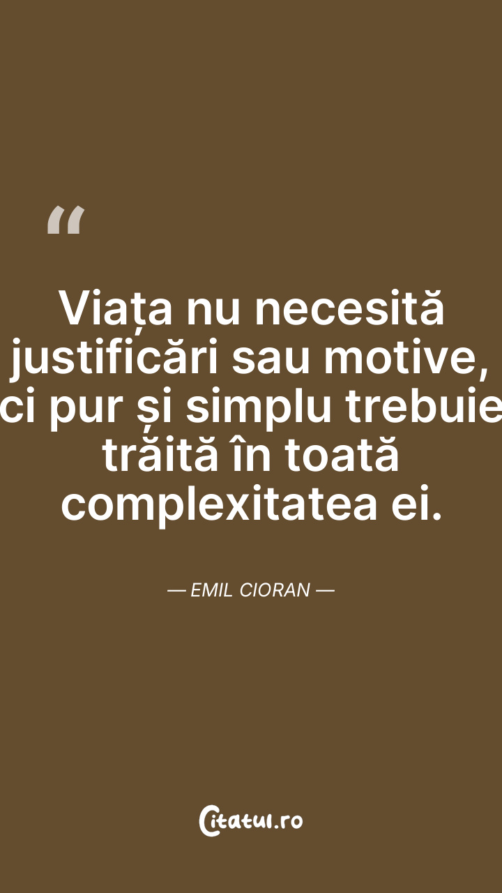 Existăm pe căi separate, iar destinul ne va reuni doar la capătul căii, în momentul final al vieții. Emil Cioran