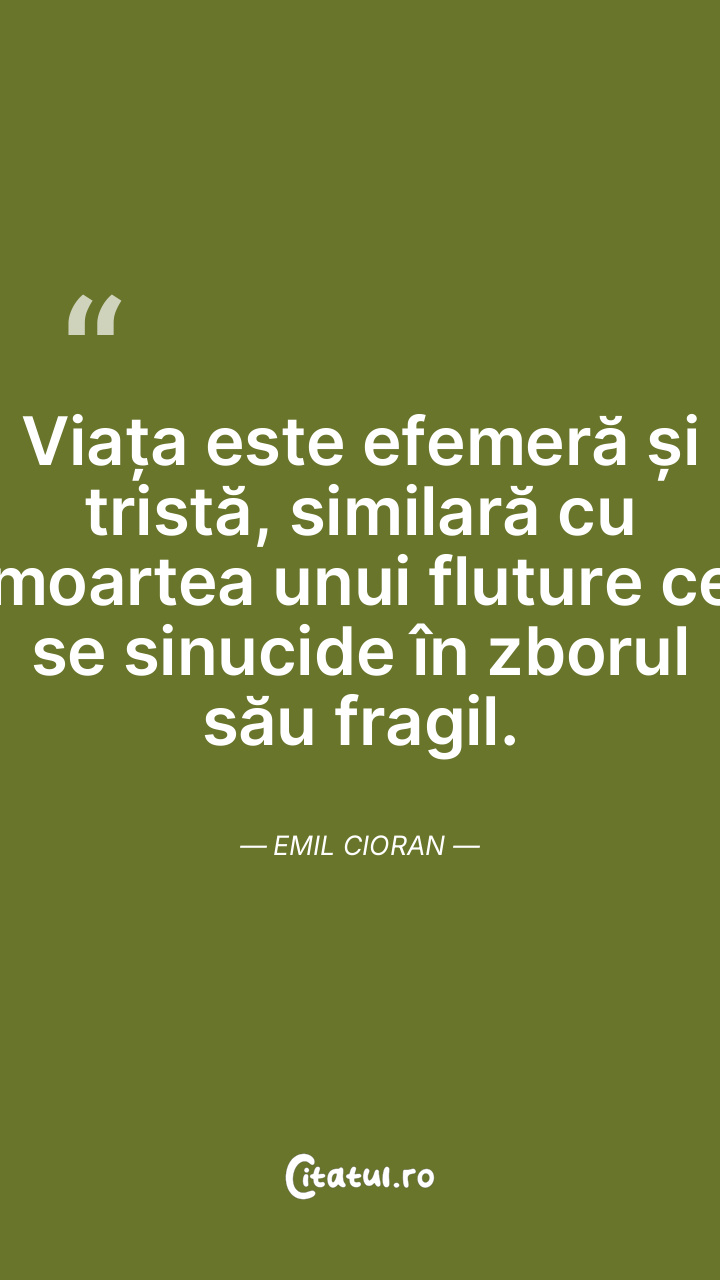 Viața nu necesită justificări sau motive, ci pur și simplu trebuie trăită în toată complexitatea ei. Emil Cioran