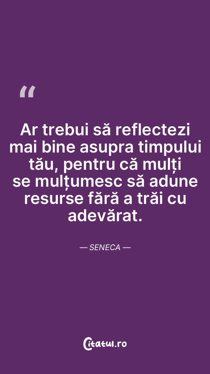 Îți dedici mult timp activităților greșite, iar o mare parte din viață o pierzi fără să acționezi pentru ceea ce contează cu adevărat. Seneca