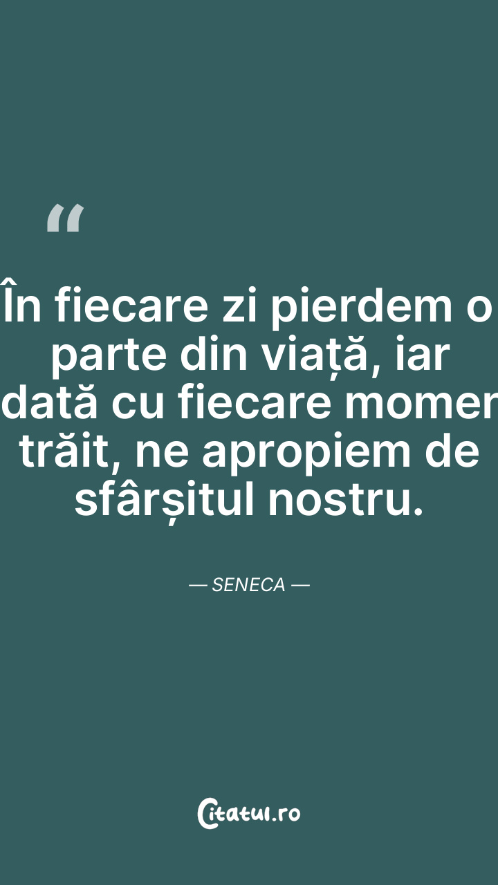 Ar trebui să reflectezi mai bine asupra timpului tău, pentru că mulți se mulțumesc să adune resurse fără a trăi cu adevărat. Seneca