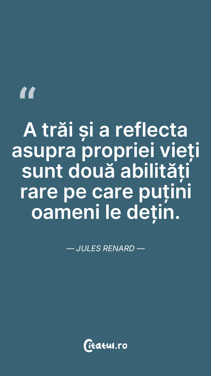 Viața este un set de unelte care poate răni și tăia, dar ne oferă și ocazia de a crea și a învăța. Jules Renard