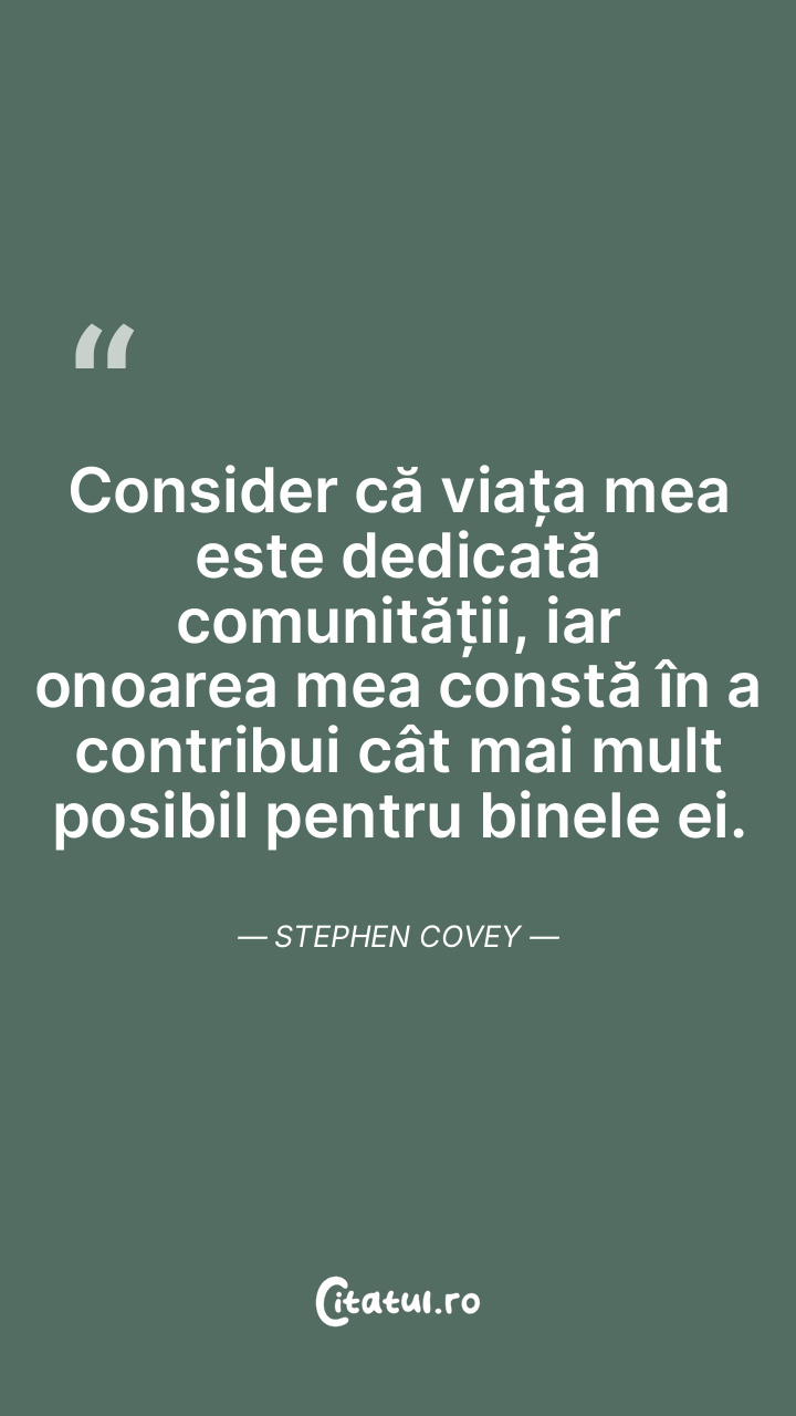 Suntem unici și doar noi putem folosi resursele personale pentru a ne modela destinul în viață. Stephen Covey