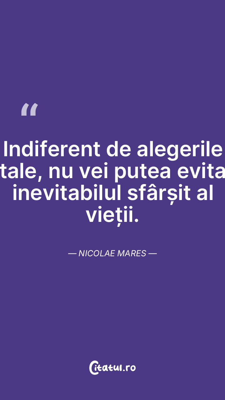 Reflectează mereu că viața este efemeră și nu o complica inutil, căci poți ajunge să o distrugi. Nicolae Mares