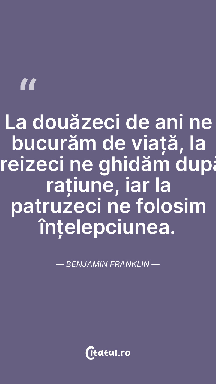 Tragedia existenței constă în faptul că ajungem să ne dăm seama de adevăruri esențiale abia după ce am îmbătrânit. Benjamin Franklin