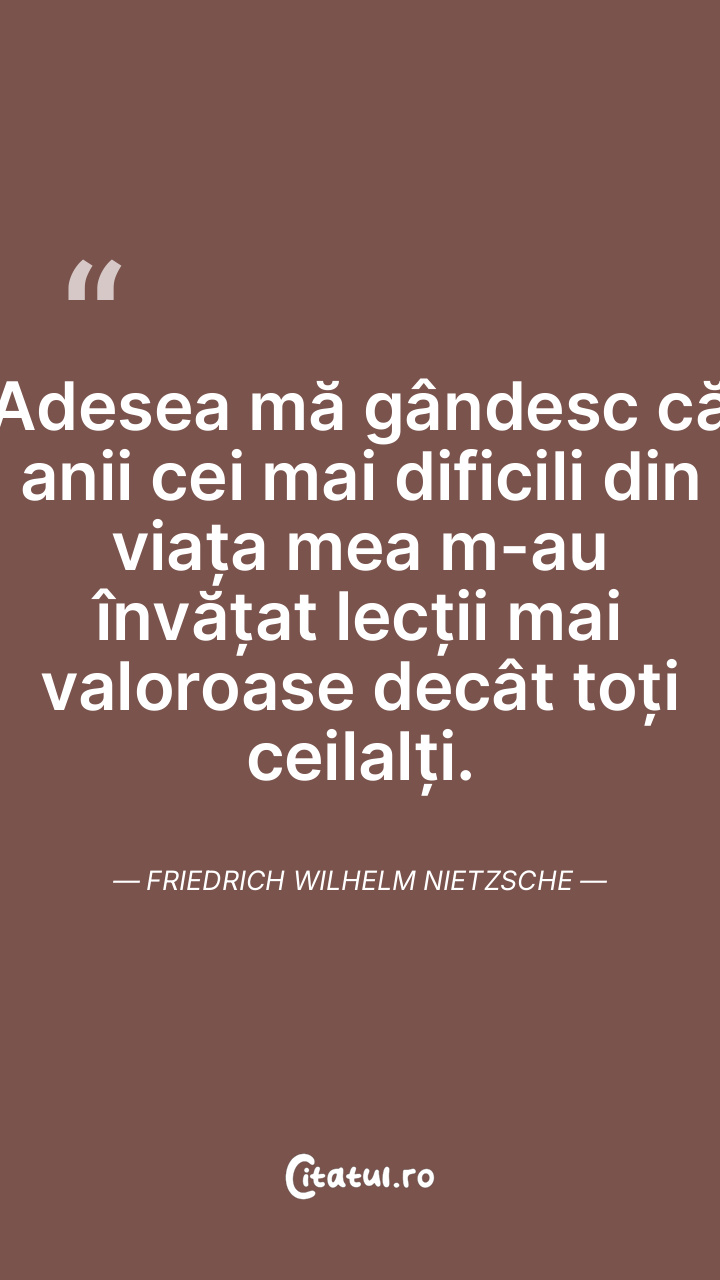 Acceptă viața așa cum se prezintă, fără a te lăsa influențat de circumstanțe. Friedrich Wilhelm Nietzsche
