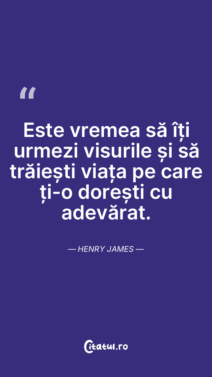 Trăiește-ți viața cu intensitate, nu lăsa momentele să treacă fără a le aprecia; altfel, care este scopul existenței tale? Henry James