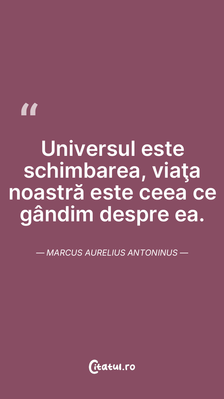 Gândurile noastre modelează realitatea vieții pe care o trăim. Marcus Aurelius Antoninus