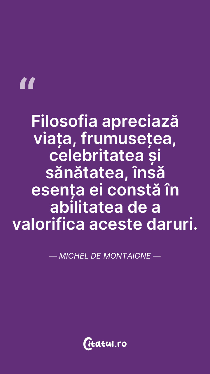 Chiar dacă viața este efemeră, să o umplem cu momente de frumusețe și bucurie. Michel de Montaigne
