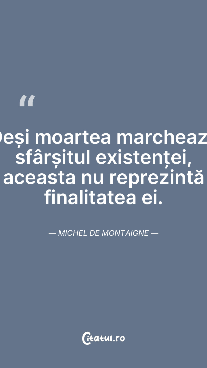 Viața noastră este un proces constant de construire, iar fiecare pas ne apropie de inevitabilitatea morții. Michel de Montaigne