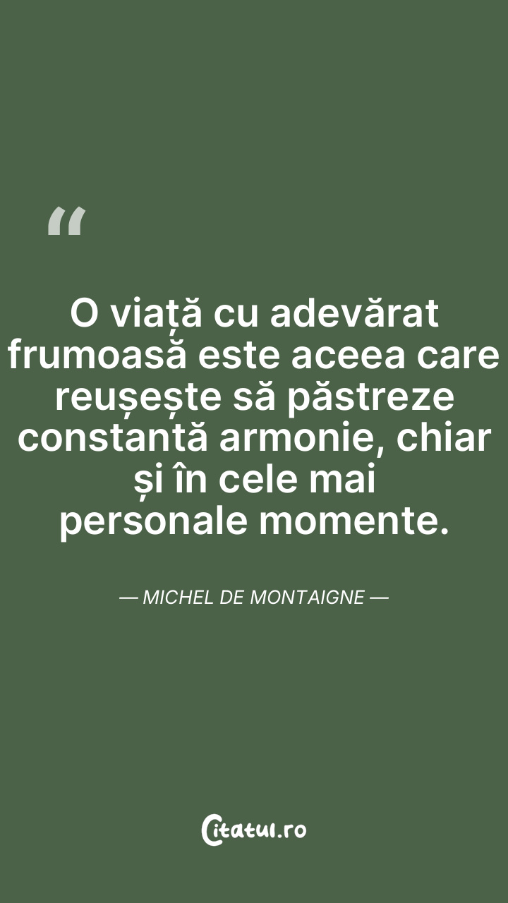 Este absurd să ne subestimăm existența, deoarece viața este, în esență, cel mai de preț dar pe care îl avem. Michel de Montaigne