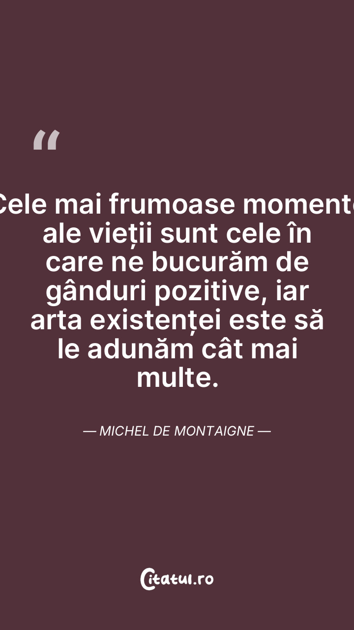 Cine nu și-a definit un scop în viață va găsi dificil să își organizeze acțiunile și alegerile cu atenție. Michel de Montaigne
