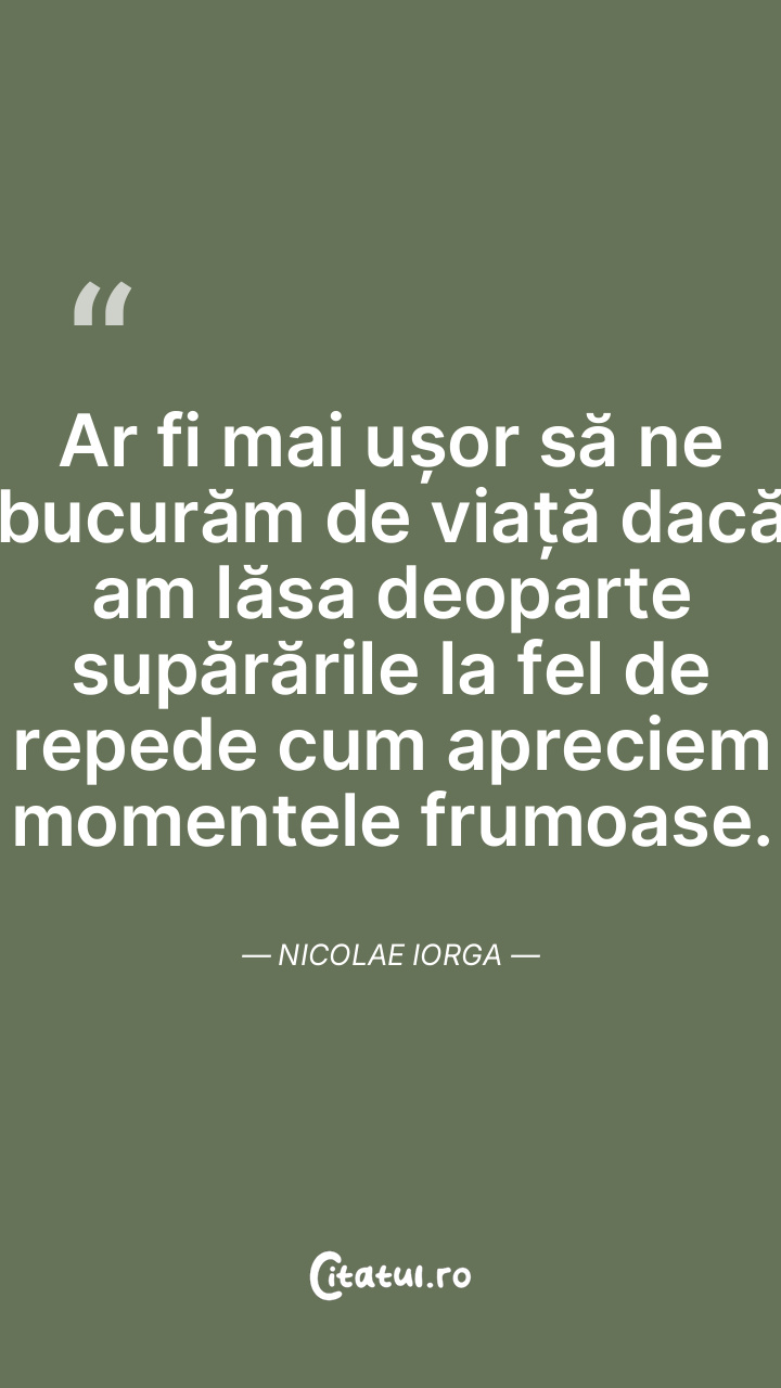 În fiecare zi, trebuie să ne păstrăm atenția asupra propriei evoluții și învățări, pentru a nu ne pierde din vedere adevărata noastră esență. Nicolae Iorga