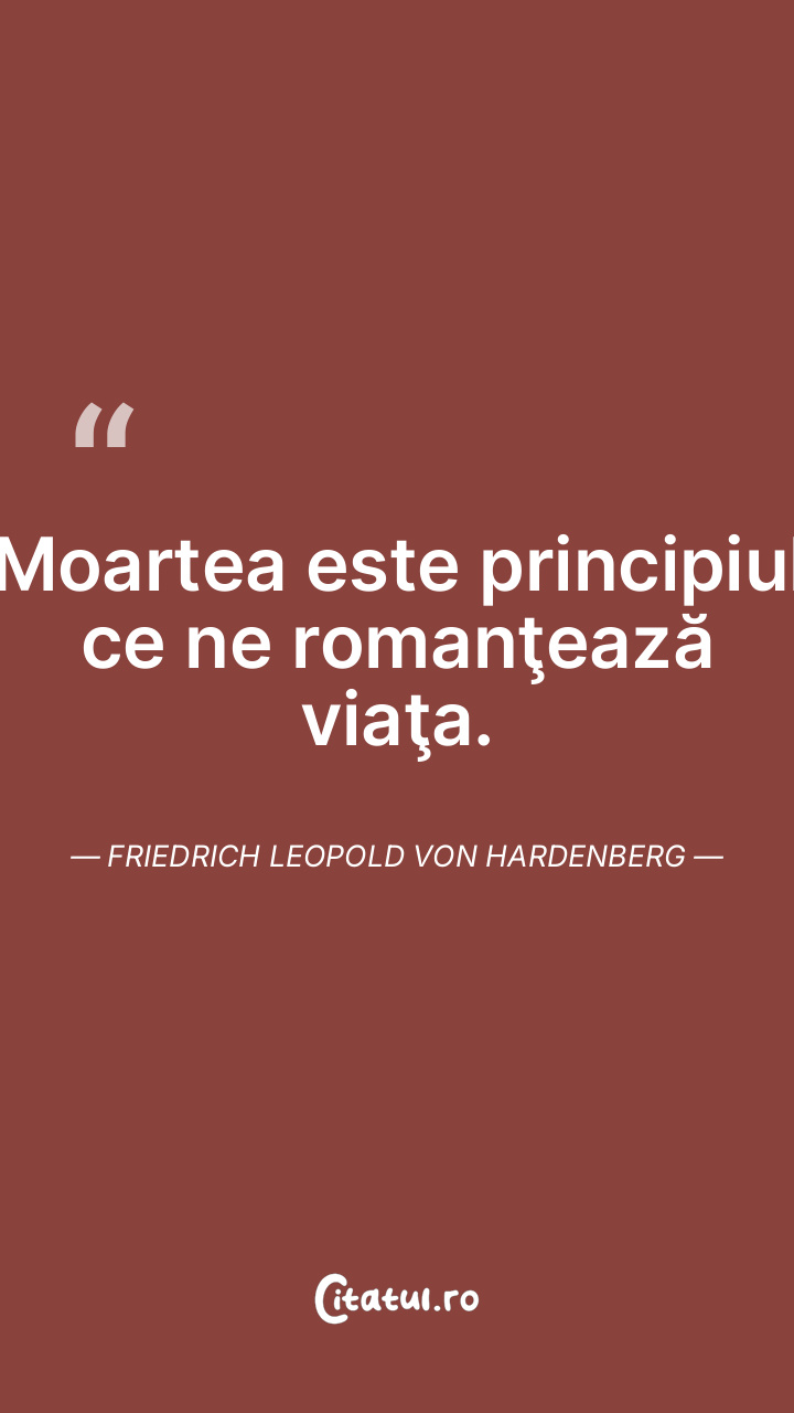 Există o strânsă legătură între viață și moarte, iar fiecare clipă trăită ne apropie de inevitabil. Friedrich Leopold Von Hardenberg