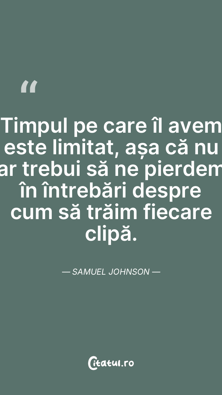 Viața devine mai ușor de suportat atunci când este presărată cu momente de aur care îi dau un sens mai profund. Samuel Johnson