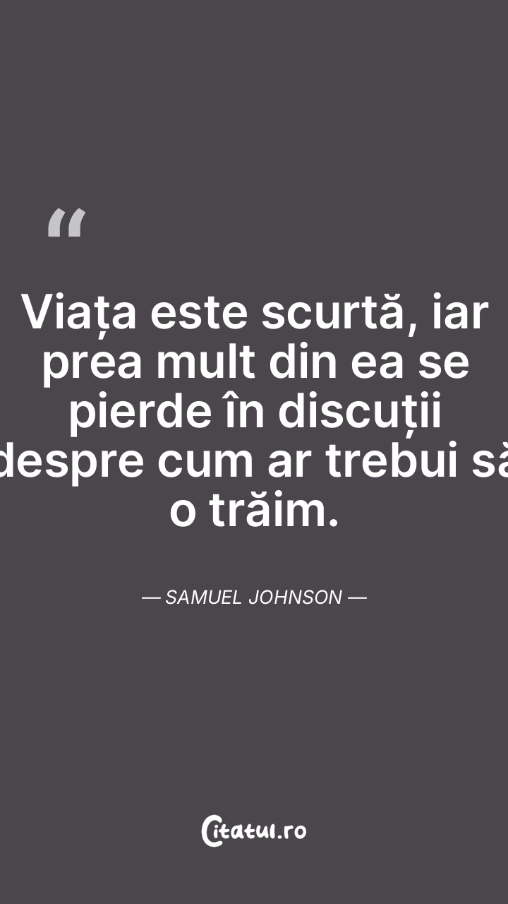 Timpul pe care îl avem este limitat, așa că nu ar trebui să ne pierdem în întrebări despre cum să trăim fiecare clipă. Samuel Johnson