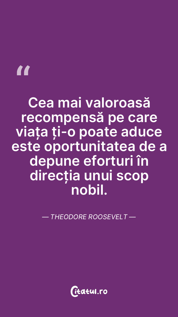 Cel mai valoros dar pe care viața ni-l oferă este oportunitatea de a ne dedica cu pasiune unei cauze nobile. Theodore Roosevelt