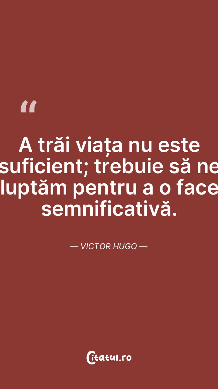 Viața este o taină profundă, un interval misterios între venirea pe lume și plecare, între deschiderea și închiderea ochilor. Victor Hugo