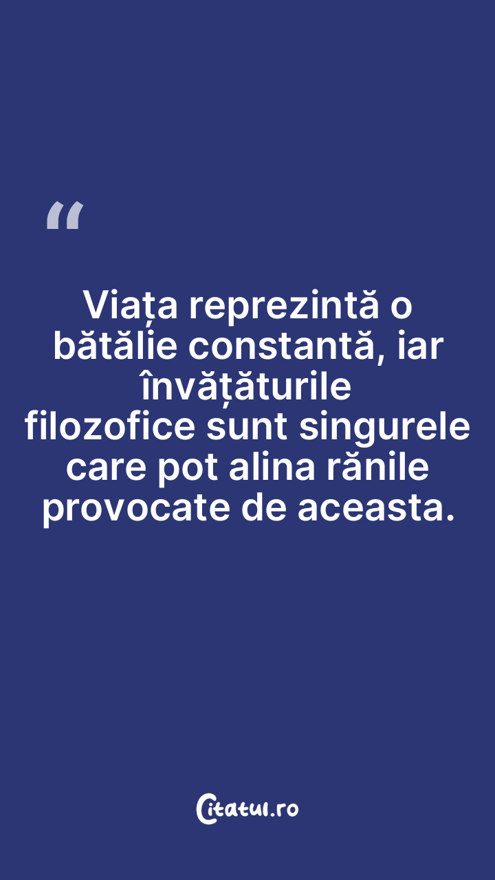 Viața este o luptă neîncetată, iar învățăturile filozofice sunt singurele care ne oferă un confort temporar în fața suferințelor.