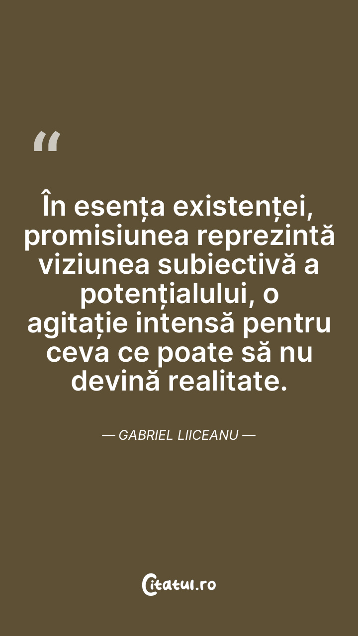 O promisiune neîmplinită nu face decât să ne ofere iluzia libertății de a amâna întâlnirea cu esența noastră. Gabriel Liiceanu