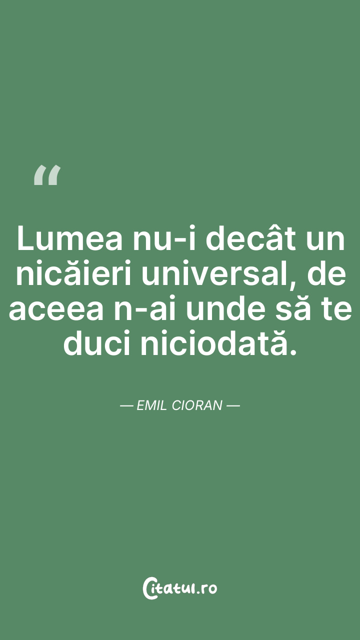 Cand ai murit lumii, ti-e dor de tine insuti si-ti consumi ce-ti mai ramane de trait intr-o nostalgie neimplinita. Emil Cioran