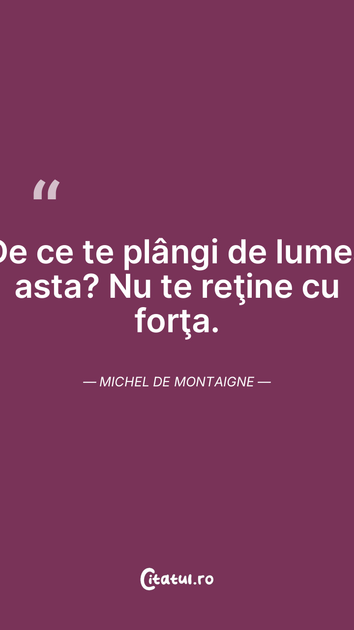 Avem o minte care se poate întoarce în sine însăşi; ea ştie să-şi ţină tovărăşie; e prevăzută cu cele trebuincioase atacului ca şi apărării, poate primi şi are ce da. Să nu ne temem că în această singurătate vom lâncezi într-o lume plictisitoare. Michel de Montaigne