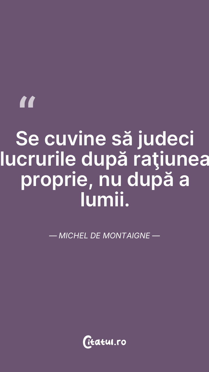 De ce te plângi de lumea asta? Nu te reţine cu forţa. Michel de Montaigne