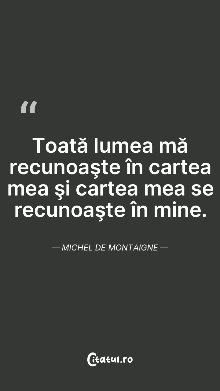 Nu mă grăbesc să spun lumii ce are de făcut, ci cele pe care le fac eu. Michel de Montaigne