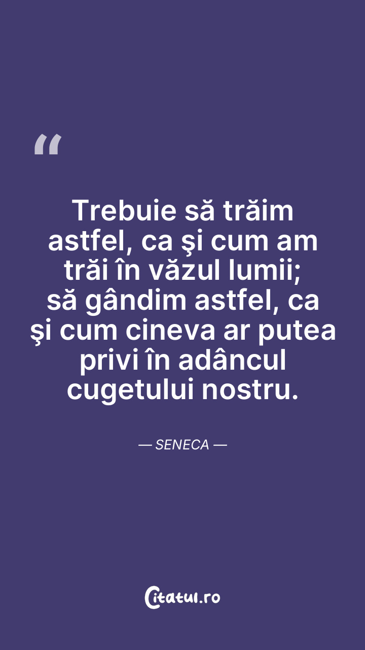 Nu trebuie să ne revolte nimic din toate acestea. Am intrat într-o lume în care trebuie să trăim după aceste legi. Seneca