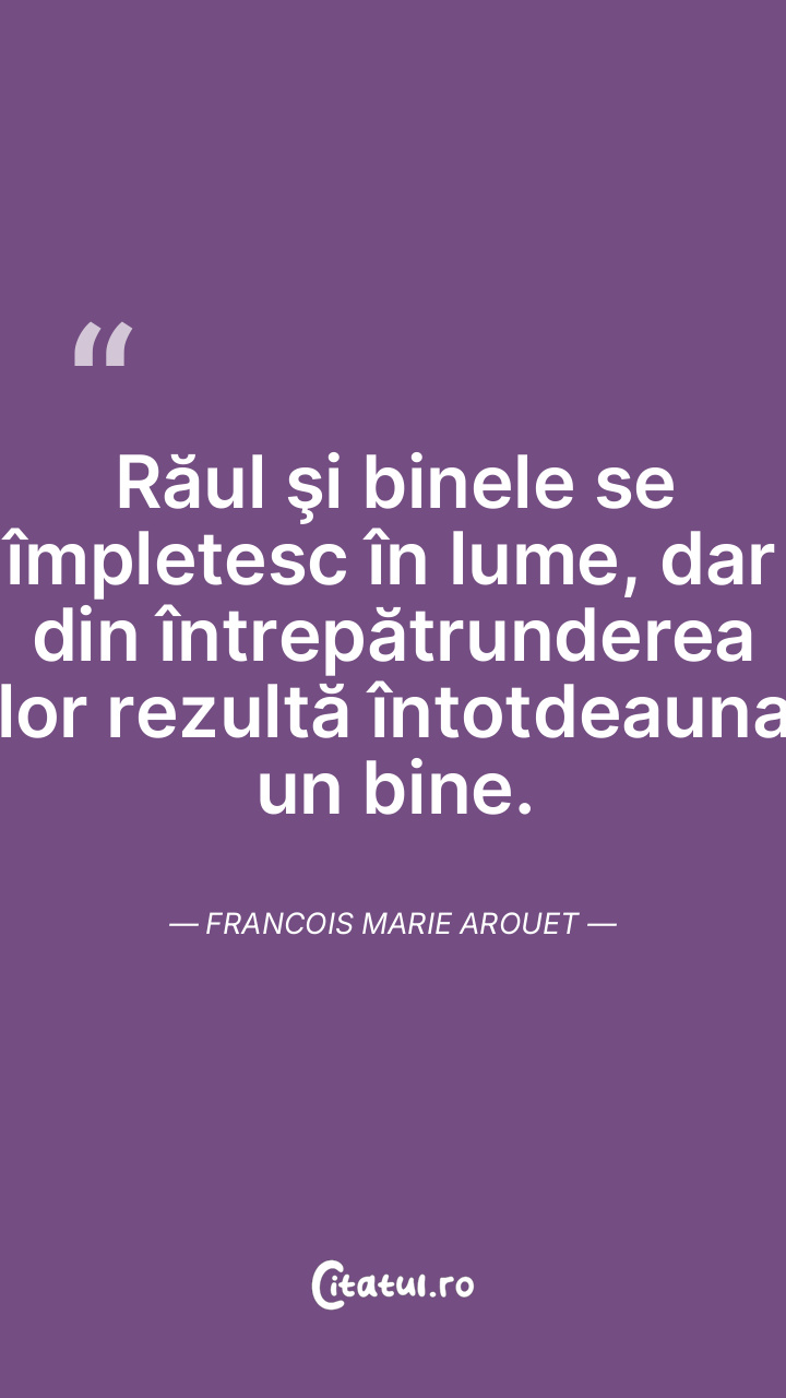 Vom lăsa lumea asta tot pe-atât de proastă şi de rea cum am găsit-o la venire. Francois Marie Arouet