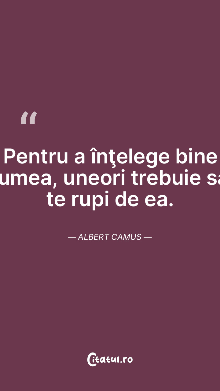 N-ar fi trebuit să scriu: dacă lumea ar fi limpede, arta nu ar exista, iar dacă lumea mi s-ar părea că are un sens, nu aş mai scrie. În unele cazuri trebuie să fii personal din modestie. Albert Camus