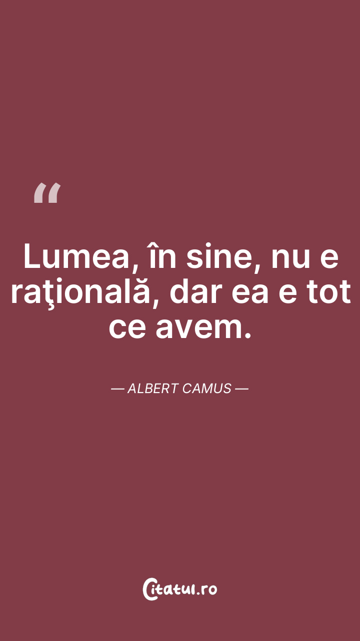 Trebuie să pledăm pentru această lume, dacă vrem să trăim în ea. Albert Camus