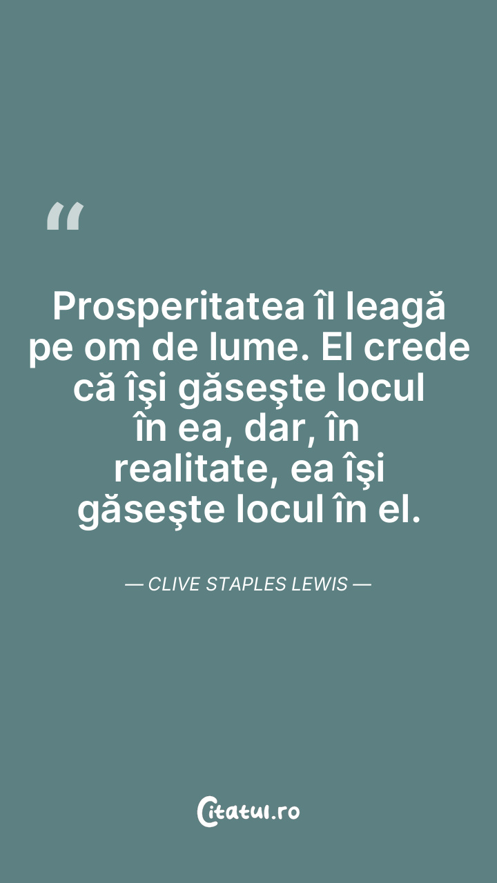 Am găsit în mine o dorinţă pe care nicio experienţă din această lume nu o poate satisface; cea mai probabilă explicaţie este că am fost făcut pentru altă lume. Clive Staples Lewis