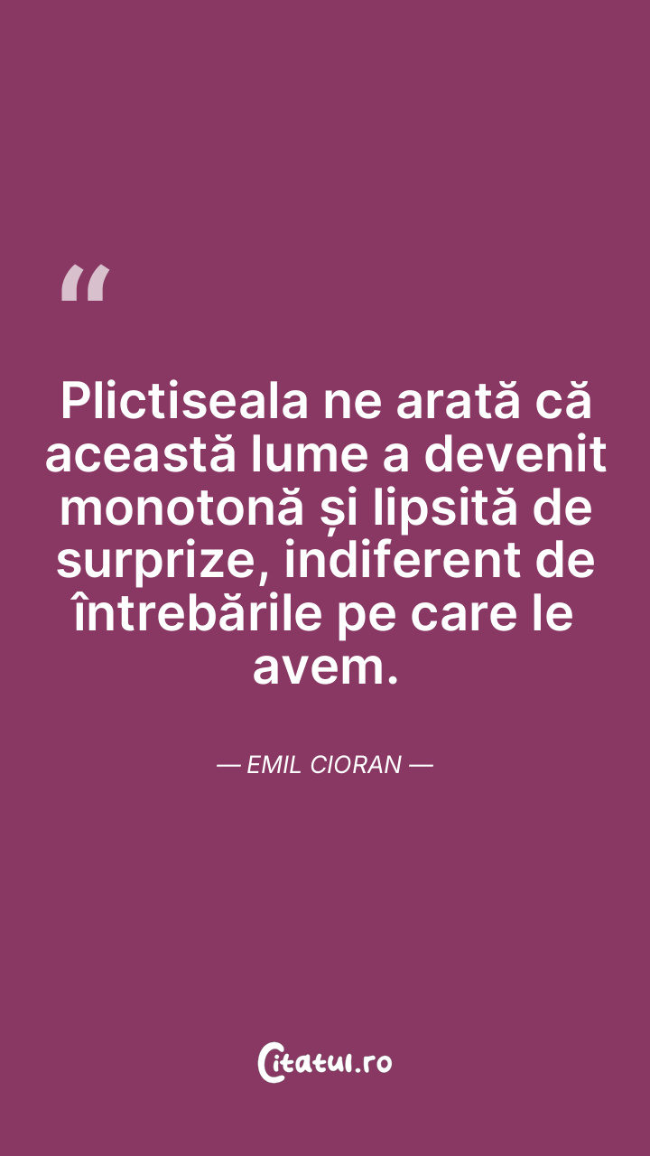 Sunt o fiinţă rămasă de la începutul lumii, în care elementele nu s-au cristalizat şi în care haosul iniţial îşi joacă încă nebunia şi învolburarea lui. Emil Cioran