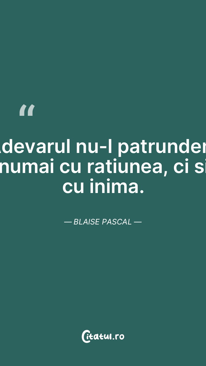 Ratiunea este metoda lenta si intortocheata prin care cei care nu stiu adevarul il descopera. Blaise Pascal