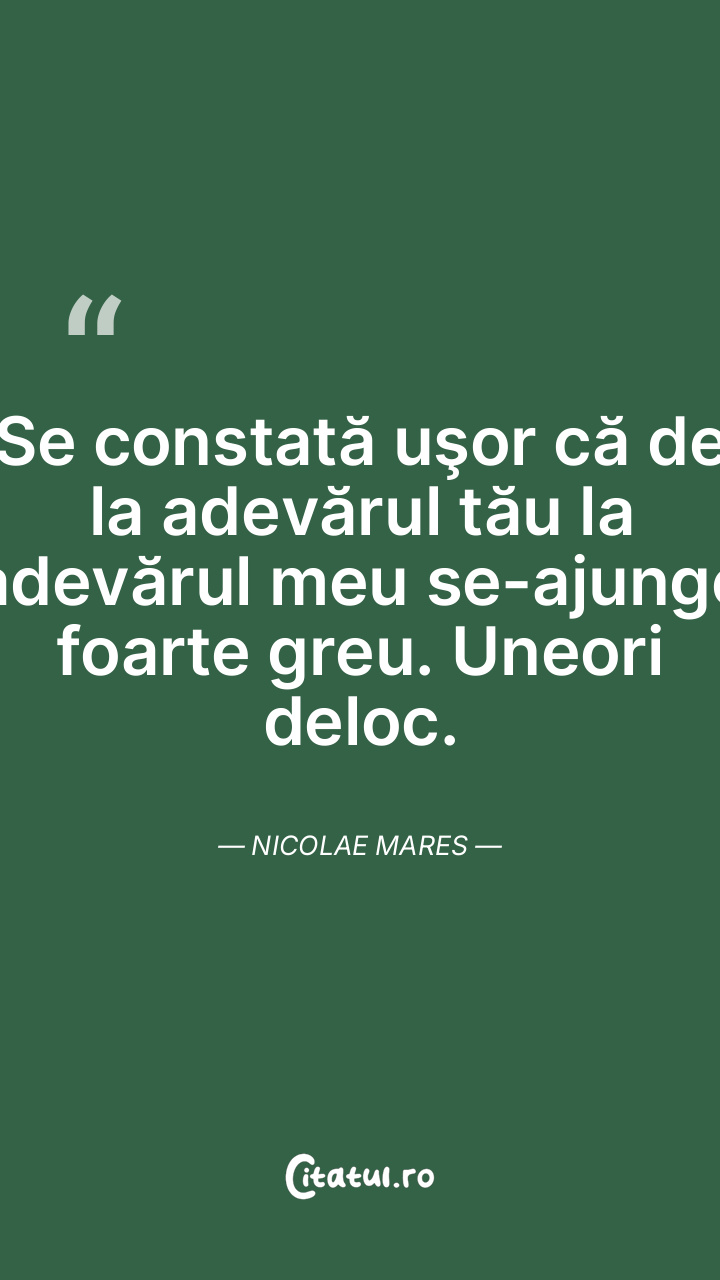 Când crezi că ai descoperit un adevăr, gândește-te că nu ești singur pe pământ. Alții stau poate mai de mult la rând. Nicolae Mares