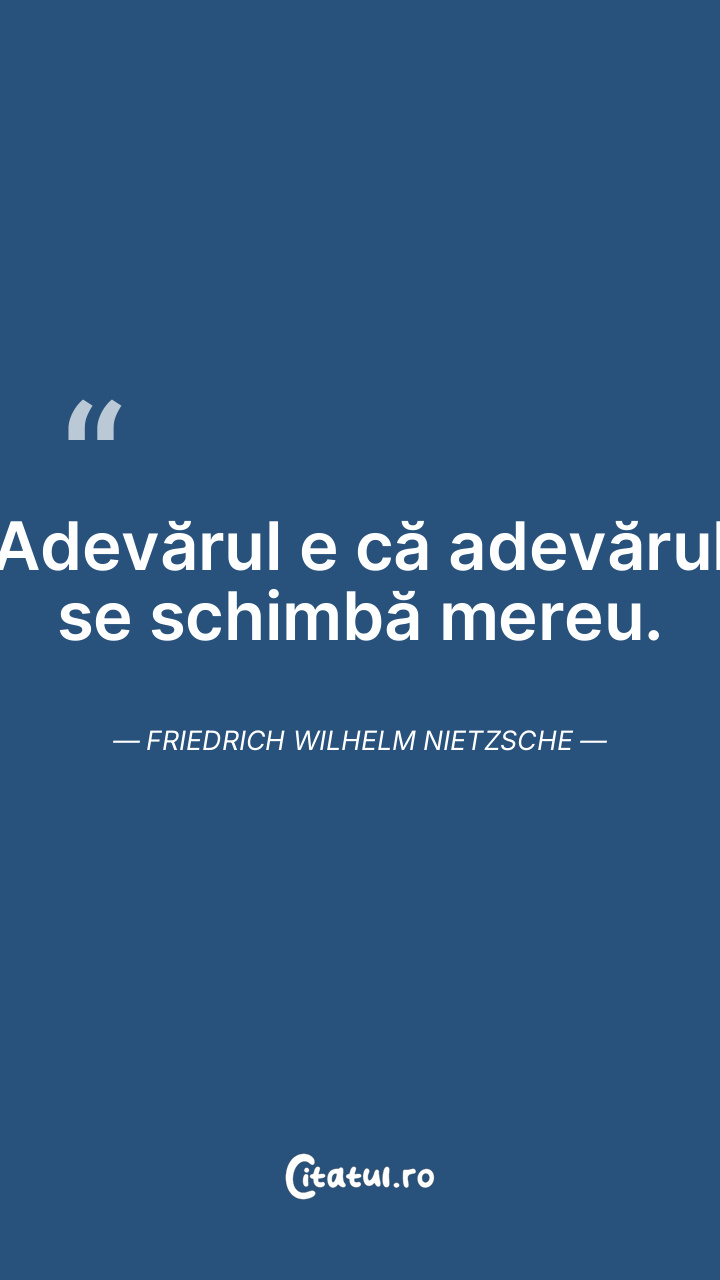 Există mai multe feluri de ochi. Chiar şi sfinxul are ochi. Drept urmare, nu există Adevărul, ci numai diverse feluri de adevăr. Friedrich Wilhelm Nietzsche