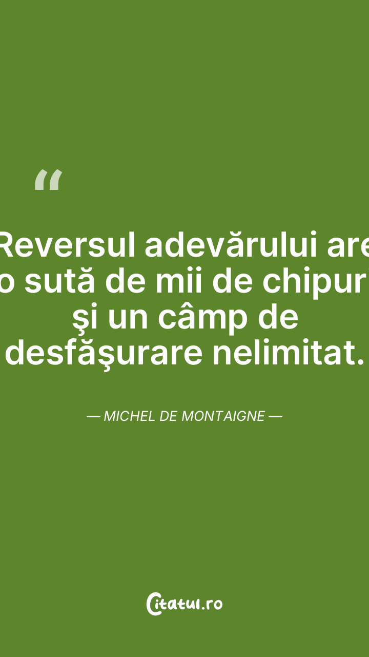 Adevărul şi raţiunea sunt comune fiecăruia; ele nu aparţin mai mult celui care le-a spus întâi decât celui care le spune pe urmă. Michel de Montaigne
