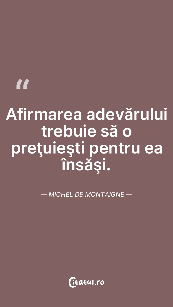 Adevărul nu se judecă după autoritatea şi mărturia altcuiva. Michel de Montaigne