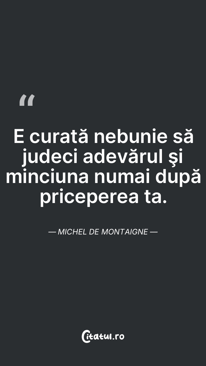 Scriitorul nu e dator să istorisească decât un adevăr împrumutat. Michel de Montaigne