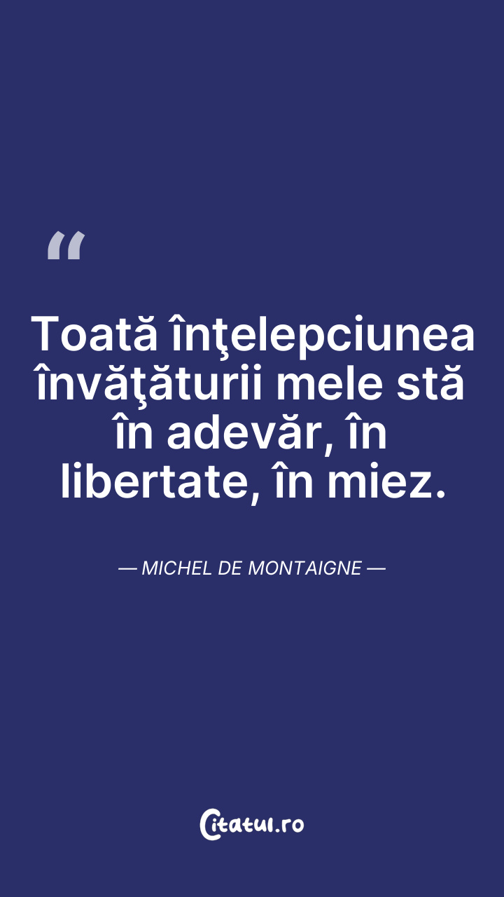 E curată nebunie să judeci adevărul şi minciuna numai după priceperea ta. Michel de Montaigne