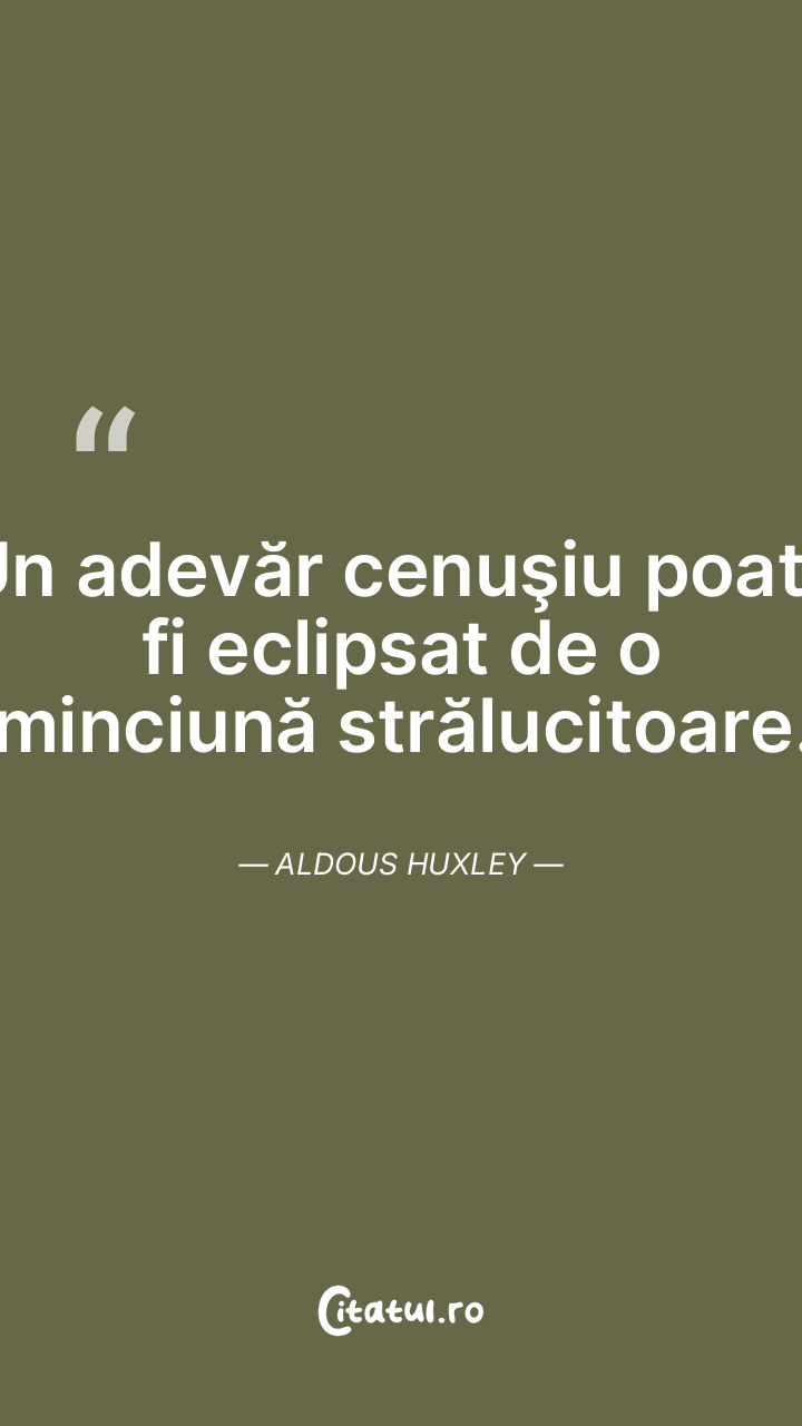 Toate marile adevăruri sunt adevăruri evidente. Dar nu şi toate adevărurile evidente sunt mari adevăruri. Aldous Huxley